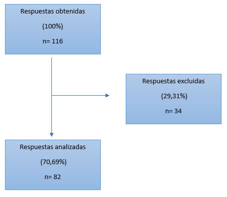 En la figura 1 (diagrama de flujo) se describen la cantidad de encuestados finales y los motivos de exclusión.