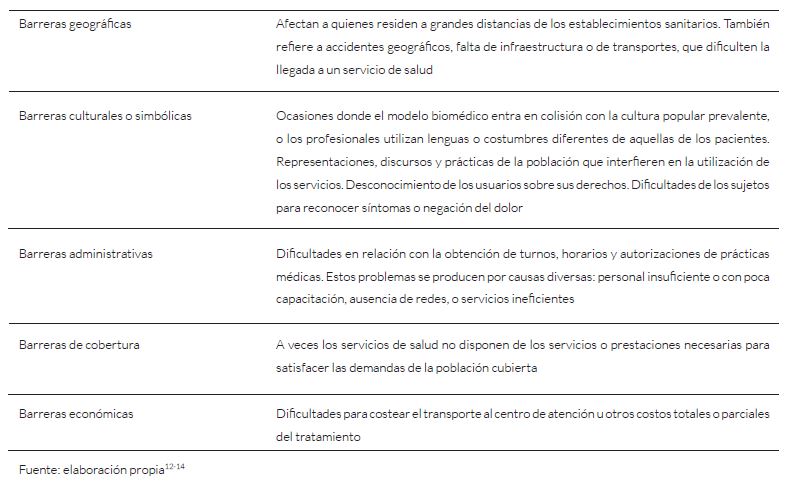 Tabla 1. Tipos de barreras en el acceso a la atención