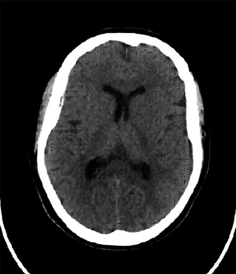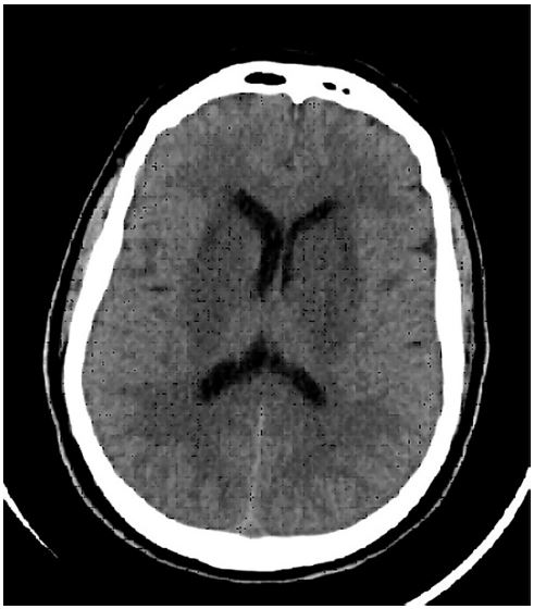 El 4 de enero del año 2024 se confirma el diagnóstico de EEO mediante la detección de anticuerpos IgM anti-EEOV (virus de encefalitis equina del Oeste) y genoma viral EEOV en LCR. El 16 de enero de 2024 se realiza traqueotomía y se da inicio al weaning respiratorio. Hacia el 2 de febrero de 2024, el paciente sigue sin mejoría del cuadro clínico, vigil, sin conexión con el entorno, polineuropático. Se repite la tomografía de cerebro (por encontrarse en desperfecto el resonador). Esta informa hipodensidad difusa de la sustancia blanca supratentorial y en focos más acentuados en la sustancia blanca córtico- subcortical a nivel de la convexidad cerebral, con hipodensidad difusa bilateral y simétrica de los núcleos grises de la base (Fig. 3). El paciente continúa traqueostomizado, con dificultad para el destete, ventilado con presión soporte/CPAP, sin requerimiento de inotrópicos, diuresis conservada por sonda, hemodinámicamente estable, vigil, apertura ocular espontánea, reflejo de succión como único reflejo arcaico, sin conexión con el medio que lo rodea, con estado de conciencia mínimo.