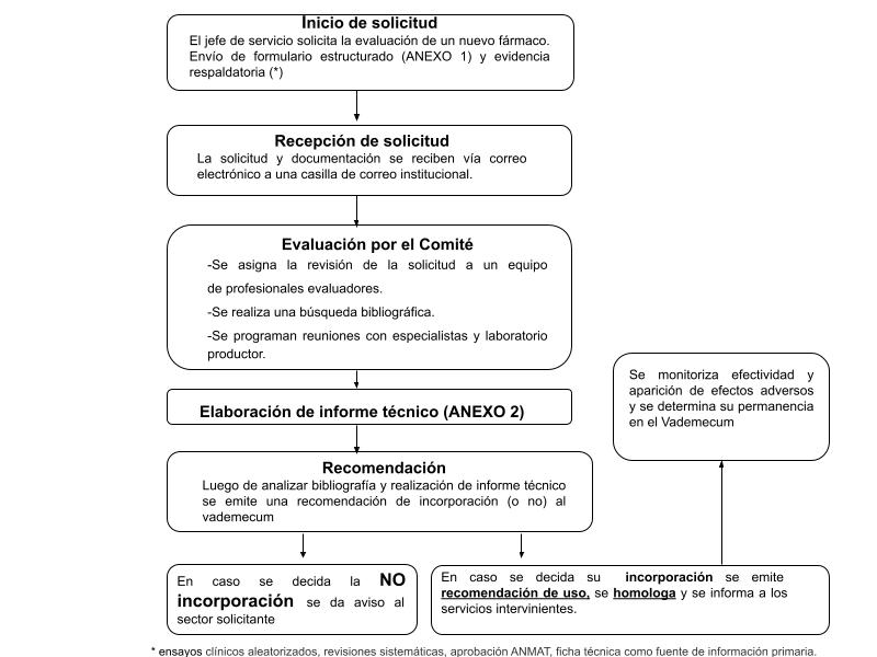 Existe evidencia de que las herramientas y la información necesarias para la toma de decisiones en los hospitales difieren de aquellas utilizadas en agencias sanitarias de alcance nacional4. Mientras que las agencias nacionales son las responsables de la aprobación de la comercialización, los comités de evaluación de medicamentos (CEM) realizan la evaluación y selección de los medicamentos que conformarán el vademécum de una determinada institución. A su vez, emiten recomendaciones específicas de uso utilizando criterios de racionalidad y eficiencia, contextualizadas en las características particulares de cada institución4. Estos comités están constituidos por equipos multidisciplinarios de profesionales de la salud que deben examinar la evidencia disponible sobre la eficacia, seguridad, calidad y costo de los fármacos para evaluar5,6.