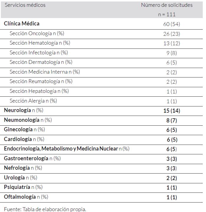 Tabla 1.Servicios médicos que solicitaron evaluación de fármacos.