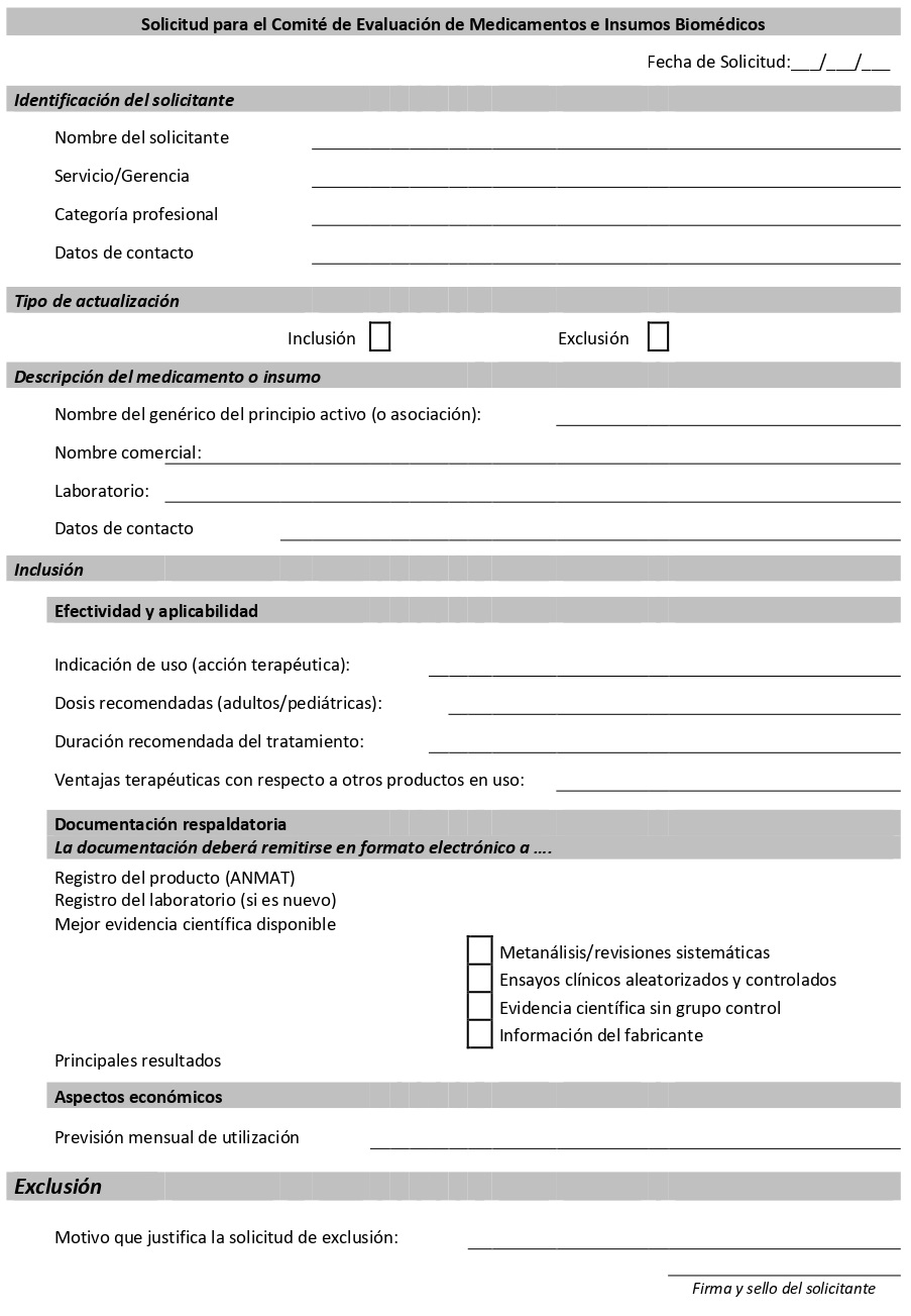 Anexo 1.Formulario de solicitud de evaluación de nuevos fármacos.