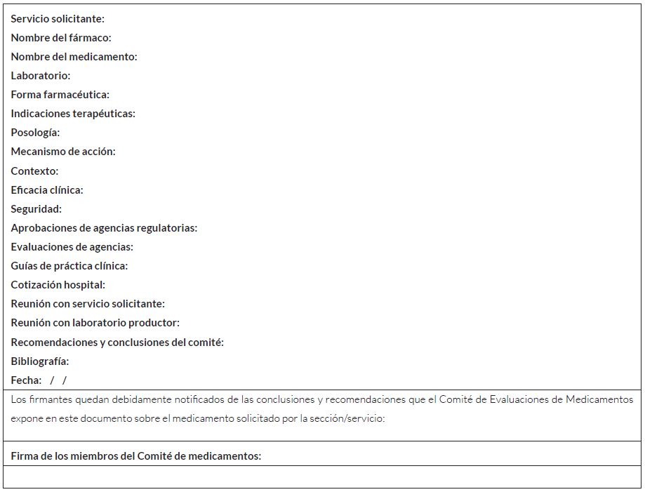 Palabras clave: Comité de Farmacia y Terapéutica, Evaluación de Tecnología, Servicio de Farmacia del Hospital, Administración del Hospital, Comités de Medicamentos.
