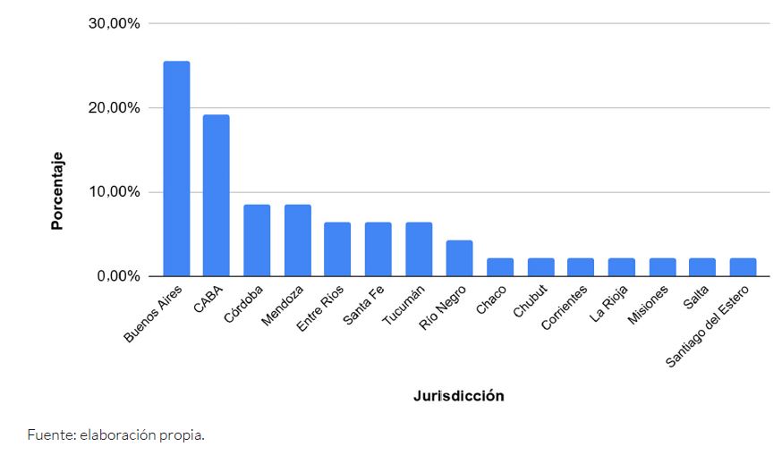 Figura 1.Distribución porcentual de facultades de Medicina por jurisdicción.
